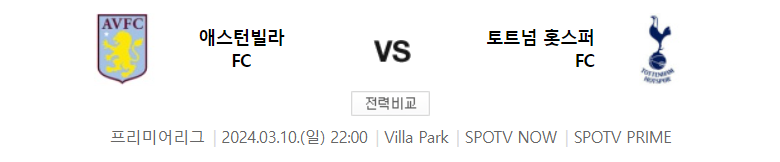 | 토트넘 홋스퍼 fc | VS | 애스턴빌라 fc |
