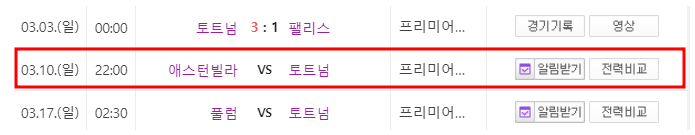 - 24.3.10(일) 22:00 ( 토트넘 애스턴빌라 경기 )