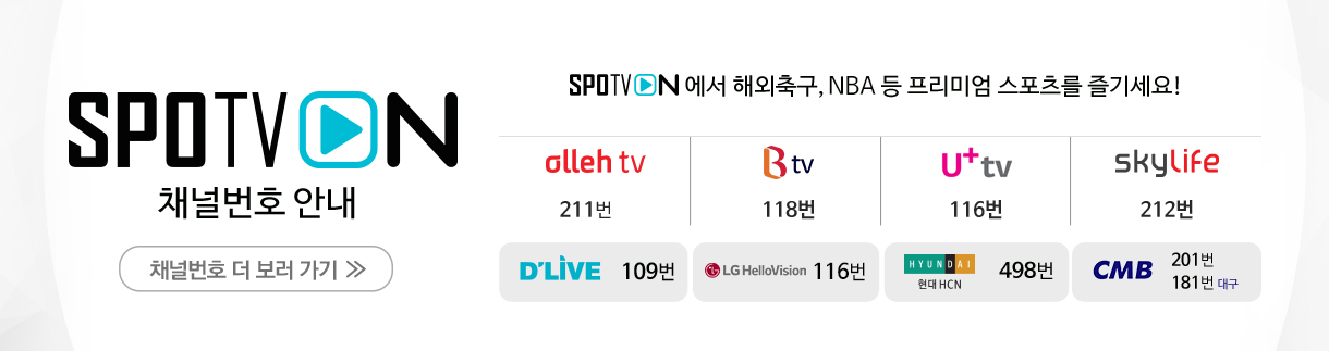 ㅇ 중계 채널 : 스포티비온, 스포티비 나우, 그 외 해외사이트 가능