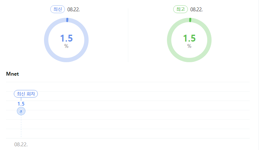 1회차 : 1.5%시작 했습니다. 최고 시청률은 3.2% 기록, 티빙 실시간 점유율 87.9%기록