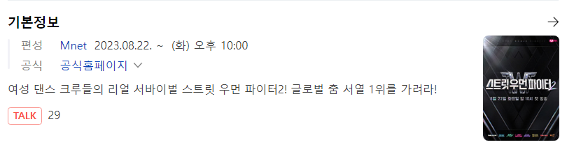 스트릿 우먼 파이터2 실시간 방송은 매주 화요일 밤 10시 Mnet과 티빙에서 시작한다고 생각하시면 됩니다. 실시간 방송과 같이 매주 회차가 추가되고 있으니 참고하시기 바랍니다.