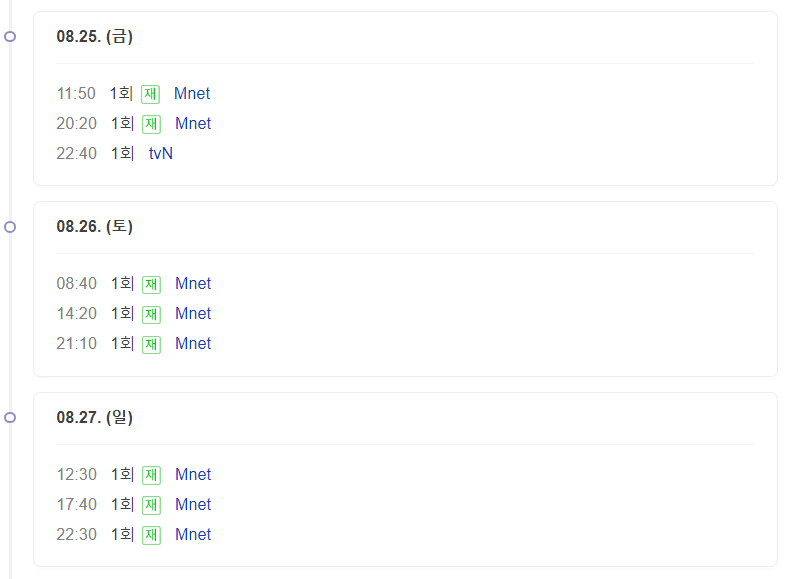 | 방송 채널 | Mnet(Genie), 티빙(TVING), SEENZ |