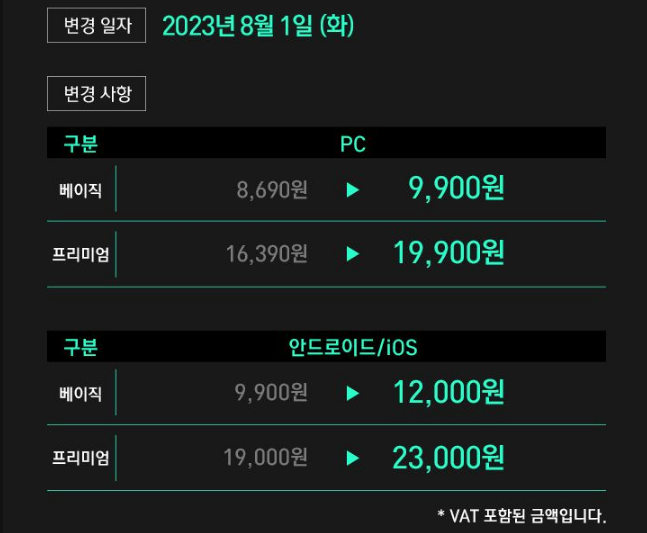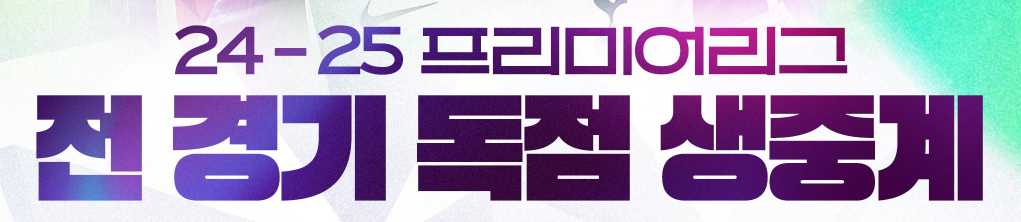 - 모바일 / pc / 스마트 tv, 초고화질, 모든 경기 LIVE, 광고 없는 VOD => 가격 PC 월 19,900원, 모바일 월 23,000원