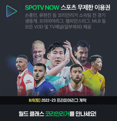 - 스포티비 나우(SOTV NOW) 스포츠 무제한 이용권, 코리안 리거 3명 선택해서 축구 야구 챔스 등 모든 출전 경기 시청 가능합니다.