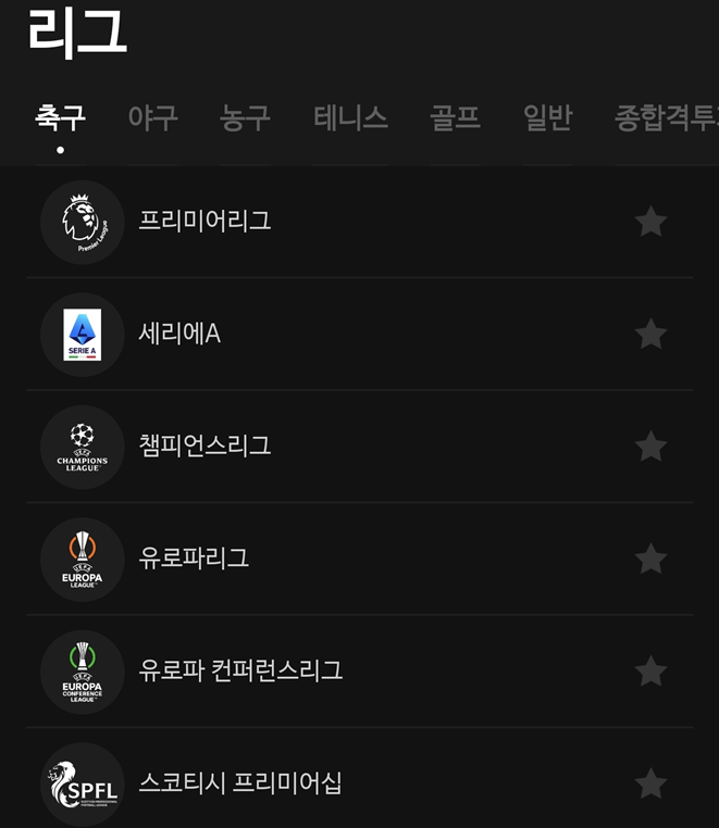ㅇ 축구, 배구, 격투기, 유럽리그 모든 스포츠 중계 이용하신다고 보시면 됩니다. 일단 거의 모든 축구 리그는 거의 다 보실수 있다고 보시면 되겠습니다^^ 하이라이트와 재방송도 지원됩니다.