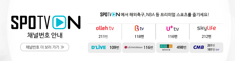 스포티비 온(SPOTV ON) 채널 번호 안내!!