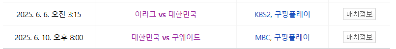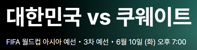 ㅇ 쿠웨이트전 중계 시간 : 25.6.10(화) 20:00