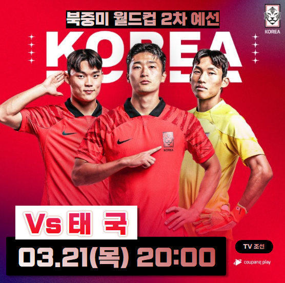 한국 태국 중계 월드컵 예선 2024년 03월 21일 대한민국 태국 축구 중계 실시간 무료보기 안내!!