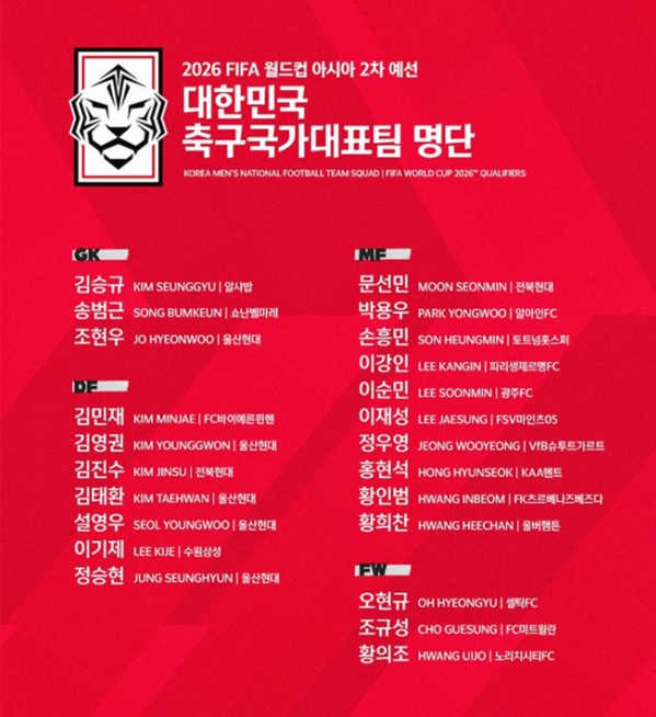 ㅇ 대한민국(한국) 소집 명단 (23명 확정)
