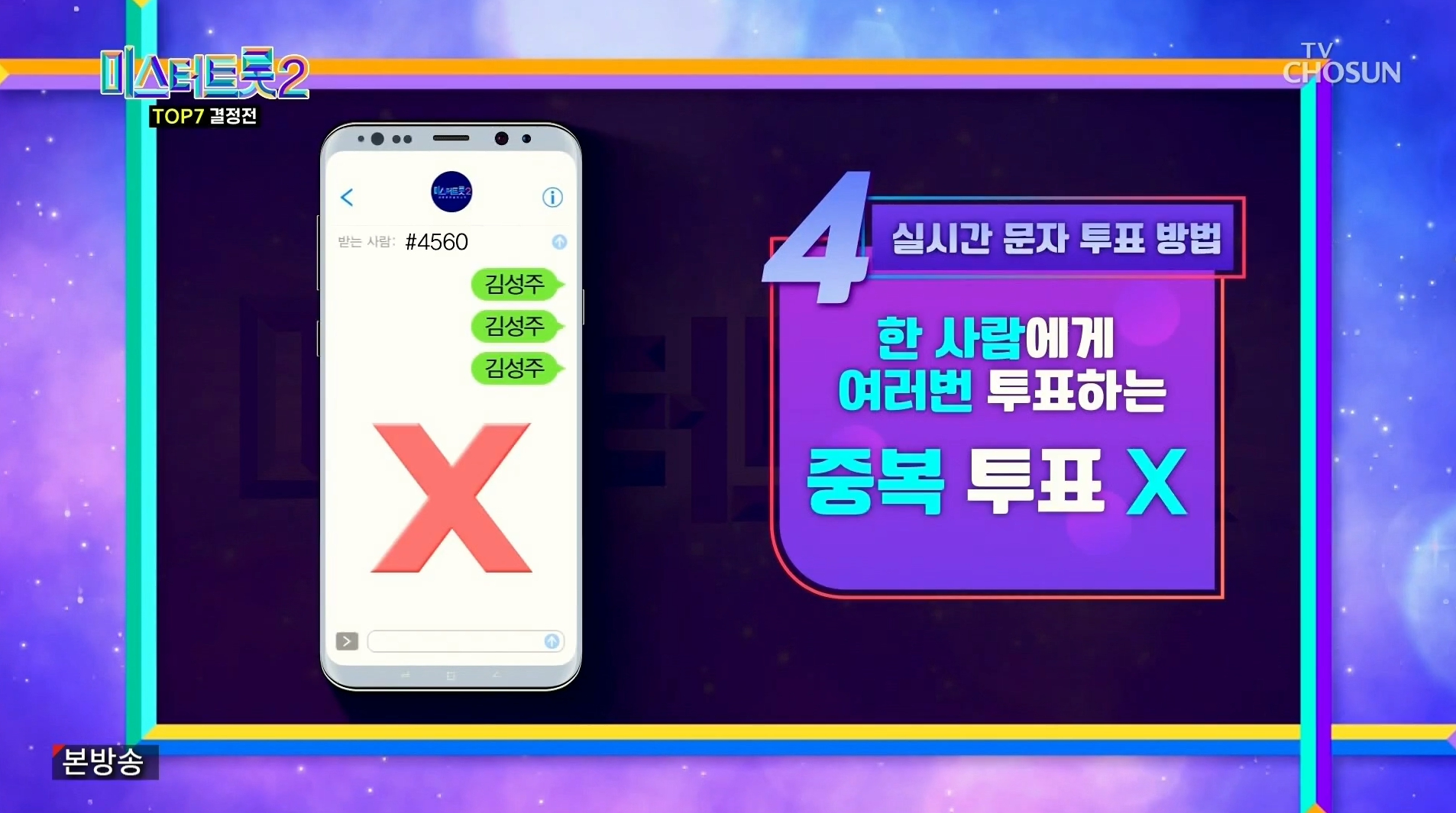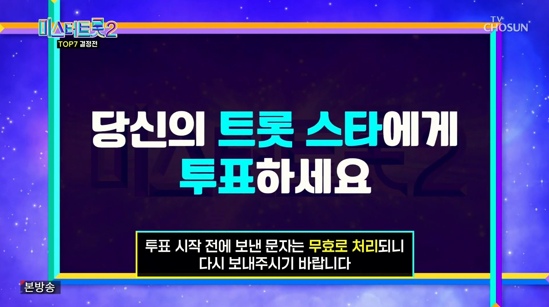 - 2025년 3월 13일 밤 09시 30분부터 미스터트롯3 결승전 TOP7에게 투표